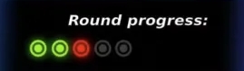 [D] Below the points section, you’ll find the “Round Progress” section. This area displays black circular markers corresponding to the number of matches that can be played in each round. Each marker represents a match and changes color based on the match outcome.